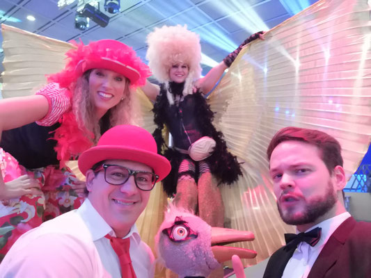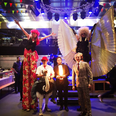 Die Showprofis begleiteten den Event mit 800 Gästen in der Stadthalle Dietikon mit Zauberei, Akrobatik, Gästeanimation und als Stelzenläufer.